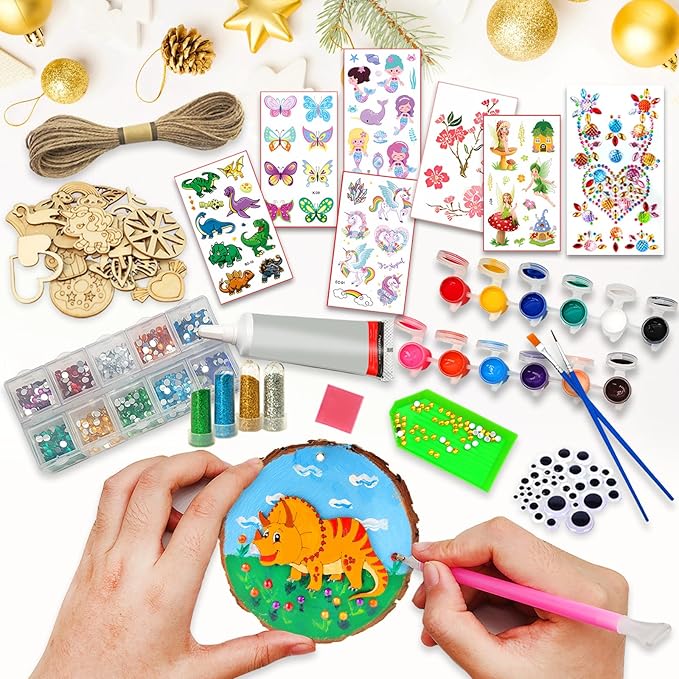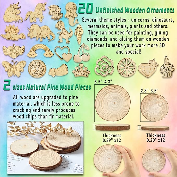 7July Wooden Arts And Crafts Kits For Kids Kids Boys Girls Age 6-12 Years Old,Wood Slices With Gem Diamond Painting Sets-Little Children'S Art & Craft Gifts
