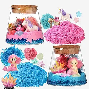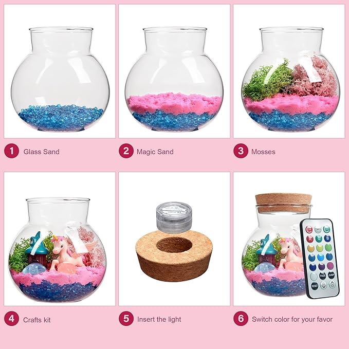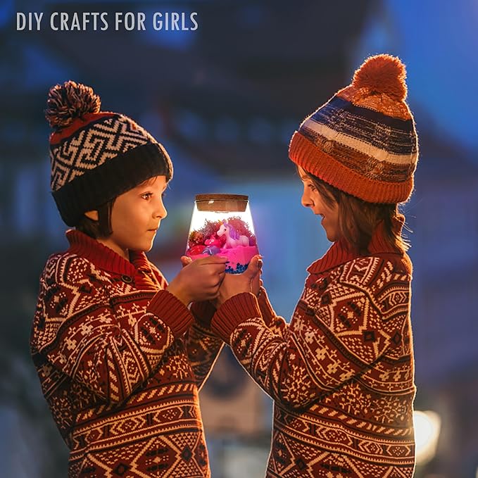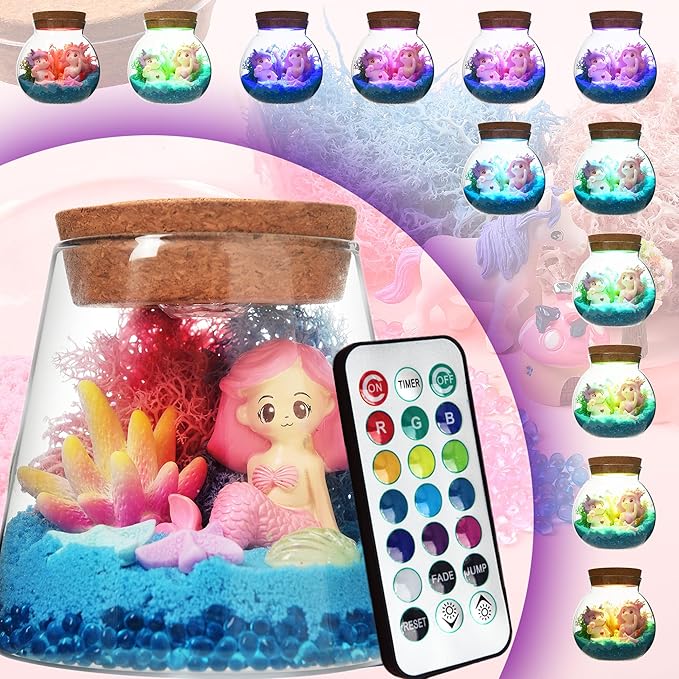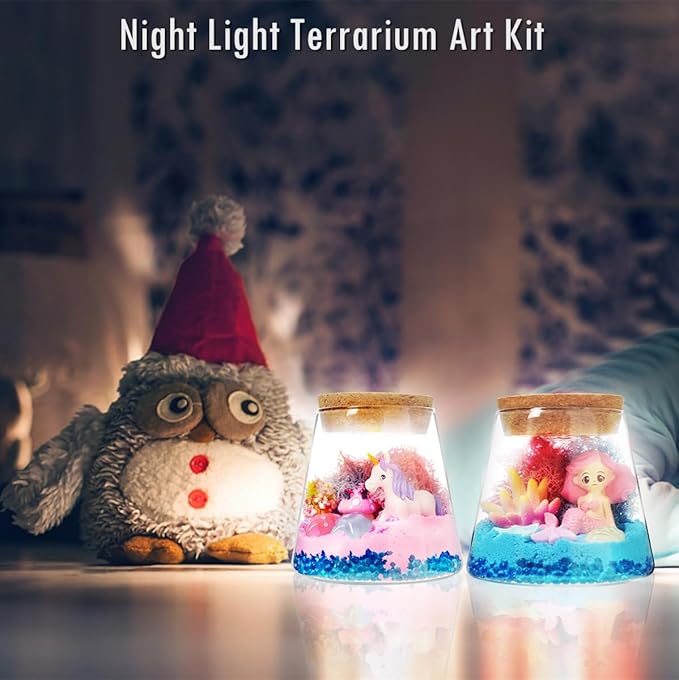 Arthink Unicorn Gifts For Girls,Diy Terrarium Arts Craft Kits,Night Light Unicorn Ganden Toys And Deep Sea Landscape For Kids,Features Gifts Stuffer (2 Pack Color)