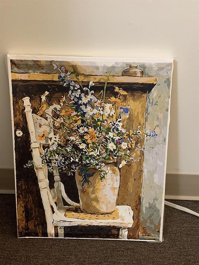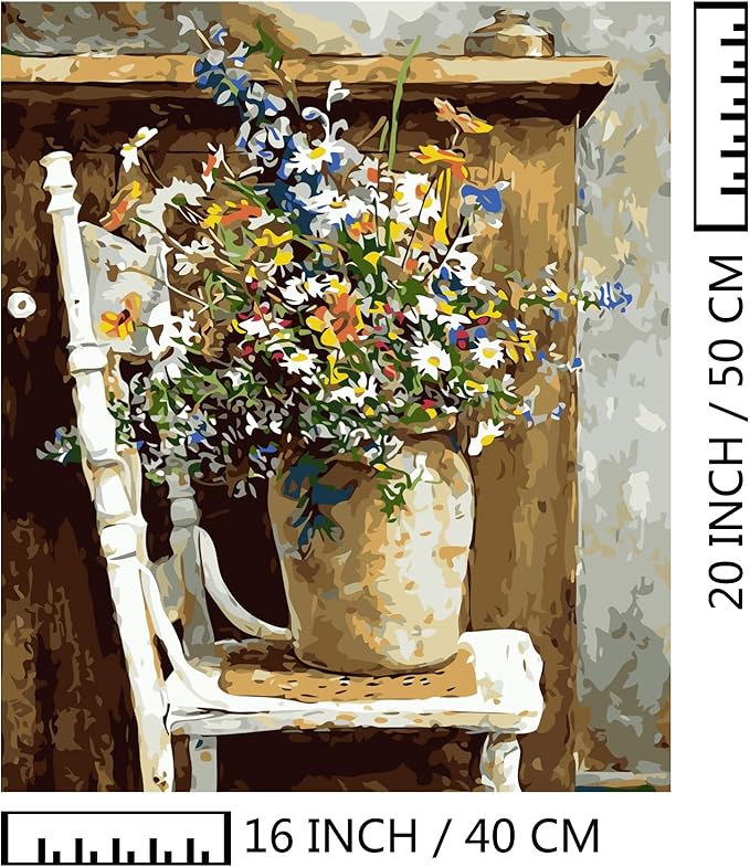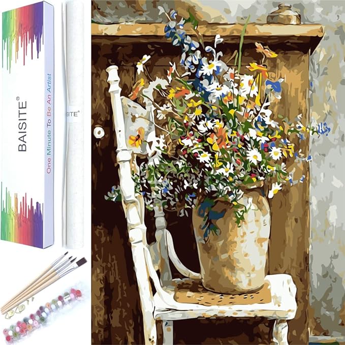 Baisite Paint By Numbers Kit For Adults Beginners,16" Wx20 L Canvas Pictures Drawing Paintwork With 4 Pcs Wooden Paintbrushes,Acrylic Pigment Sunflowers-Bsc003
