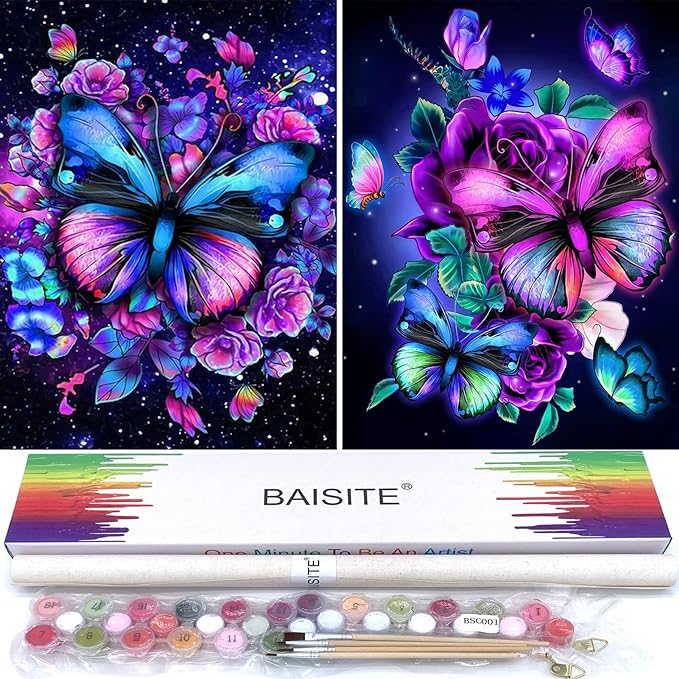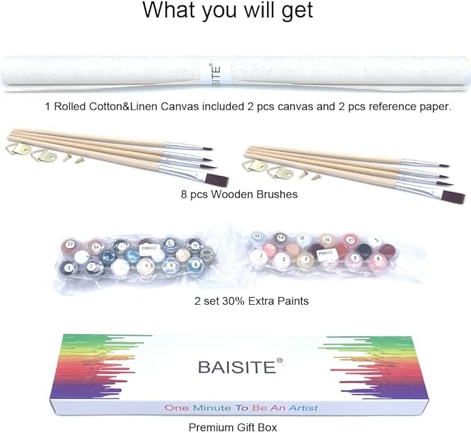 Baisite Paint By Numbers Kit For Adults Beginners,12" Wx16 L 2 Pack Canvas Pictures Drawing Paintwork With 8 Pcs Wooden Paintbrushes,Acrylic Pigment In Gift Box-5152