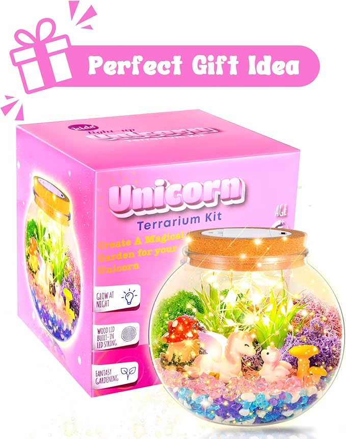 Unicorn Gifts For Girls - Light Up Unicorn Terrarium Kit For Kids - Diy Unicorn Arts & Crafts Toy - Birthday Gifts For Kids Age 5 6 7 8-12 Year Old Girl Gift