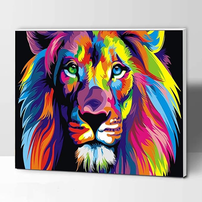 Ifymei Paint By Numbers For Kids And Adults Beginner, Diy Gift Canvas Painting Kits With Frame, 12X16 Inch Colorful Lion